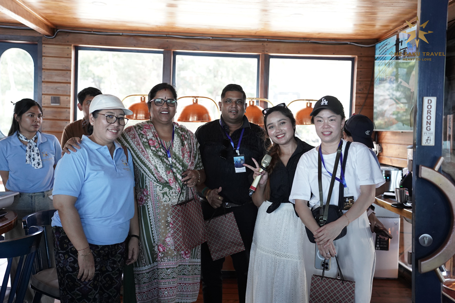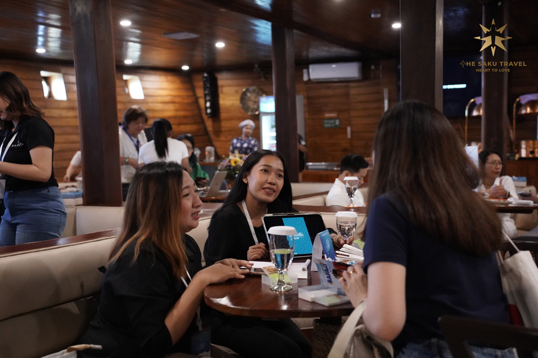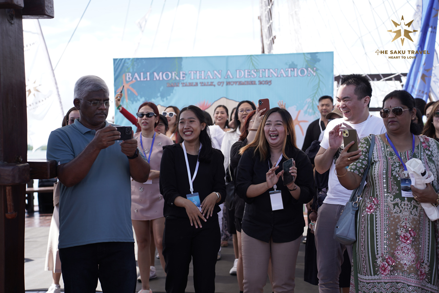 The experience continued with a remarkable sailing program aboard a beautifully crafted Phinisi Cruise departing from Benoa Harbour. While enjoying panoramic ocean views and refreshing sea breezes, participants took part in a dedicated B2B Business Talk session. This onboard meeting provided a focused yet relaxed environment for discussing collaboration opportunities, strengthening partnerships, and exploring new business directions. With its elegant wooden interior and serene seascape setting, the Phinisi Cruise became an inspiring venue for productive conversations curated by The Saku Travel.